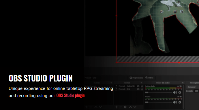 E aqui nas terras Brazucas temos o Firecast, também uma ferramenta gratuita para tabletop RPG online, entretanto o Firecast possui uma funcinalidade muito legal, ele tem integração com o programa de streamer OBS.