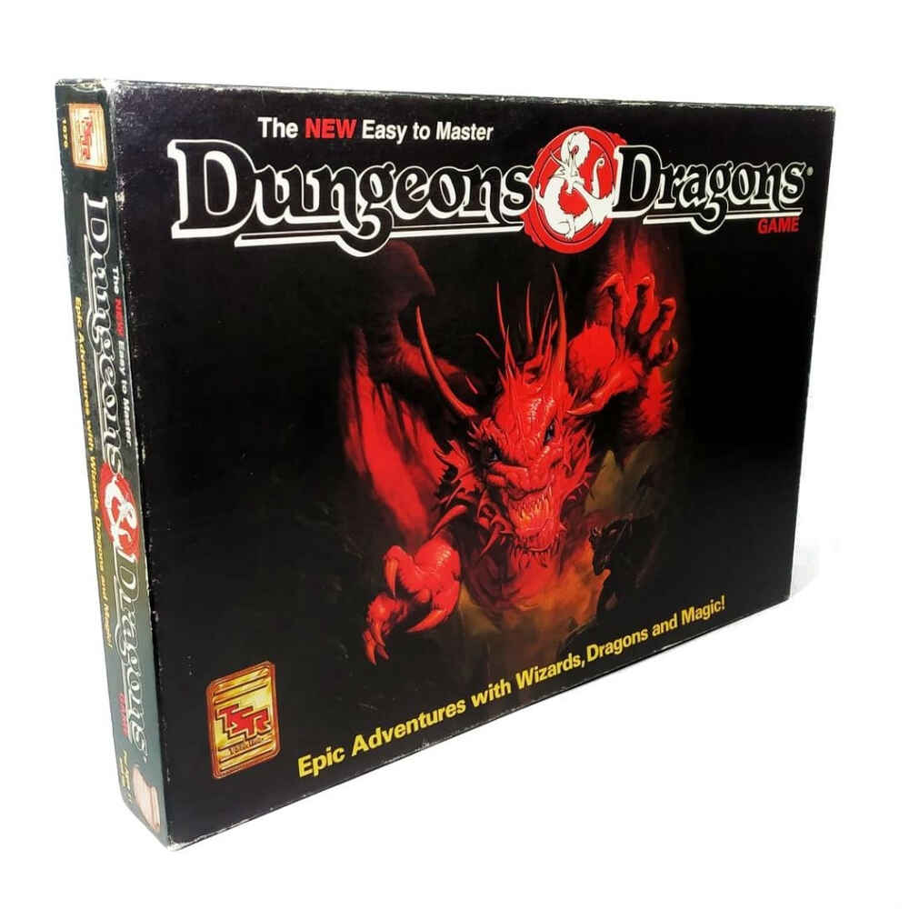 Posteriormente, depois de um aninho a Grow faz o que? Lança o famoso D&D Caixa Preta, a princípio com regras resumidas, e bem básicas do D&D Rules Cyclopedia. E a arte era linda, que caixa bonita. Um dragão vermelho dentro de uma masmorra saltando aos nossos olhos.